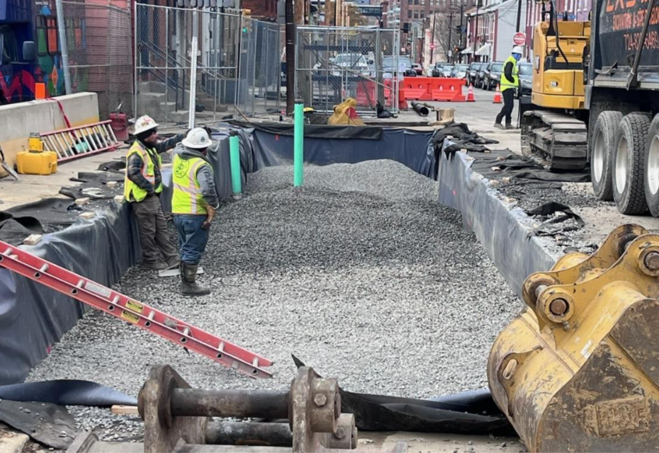PRT’s contractor continues to install green infrastructure systems throughout Uptown. The most recent green infrastructure (GI) construction site is at Forbes Avenue and Miltenberger Street. This location will be an underground storage trench.