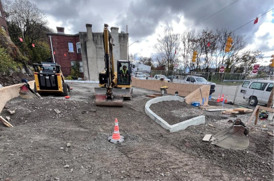 PRT’s contractor is in the process of building a retaining wall for the future residential parking lot at Fifth Avenue and Kirkpatrick Street.