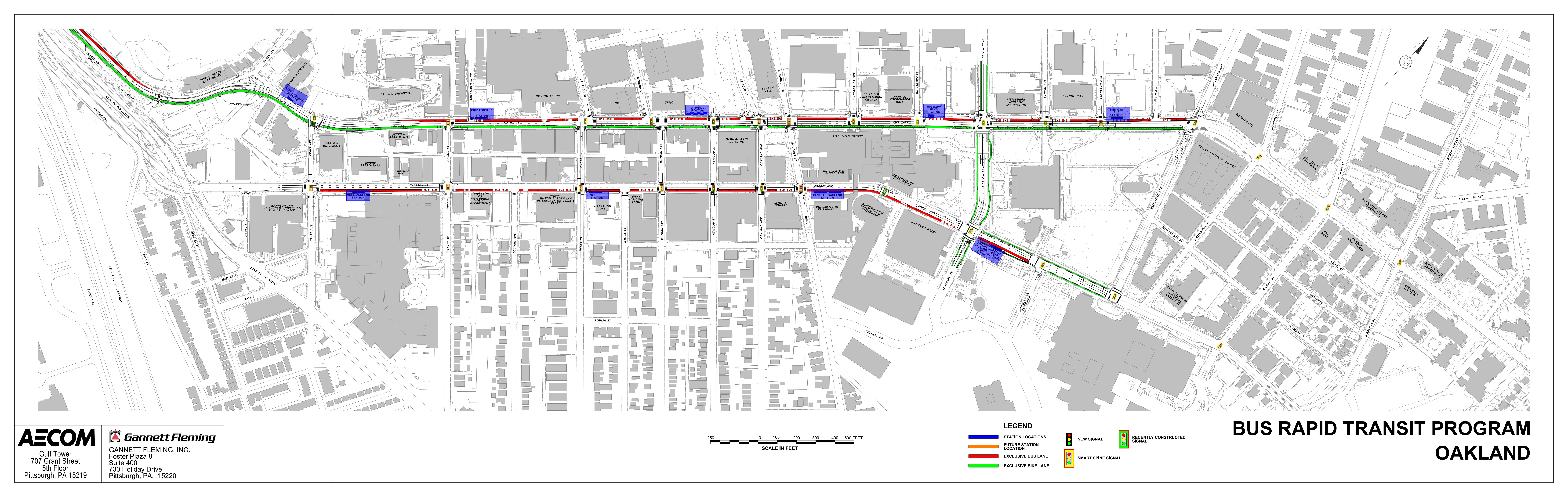 PRT's contractor began construction activities in June 2025 at locations throughout the Oakland community. Of these locations, five stations will be for buses traveling inbound to Downtown on Fifth Avenue and four stations will be for buses traveling outbound through Oakland on Forbes Avenue.