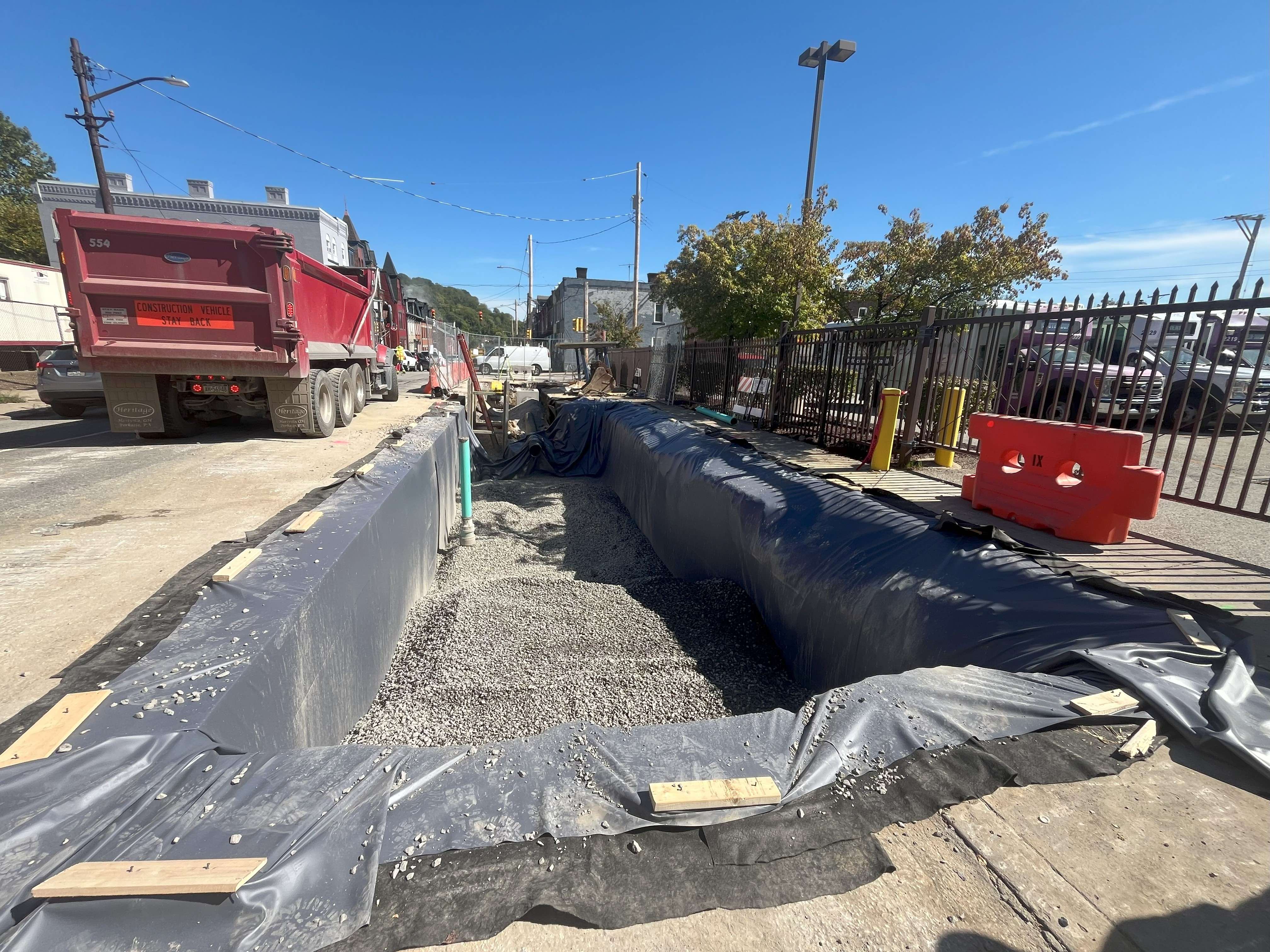 PRT’s contractor is beginning to install green infrastructure on Fifth Avenue at Jumonville Street and Forbes Avenue at Jumonville Street.