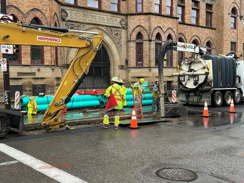 PRT’s contractor continues to relocate drainage infrastructure along both Forbes and Fifth avenues. Stormwater inlet relocations are needed to match the new expanded sidewalk, sidewalk bump outs, and green infrastructure to be installed along Forbes and Fifth avenues in Uptown.