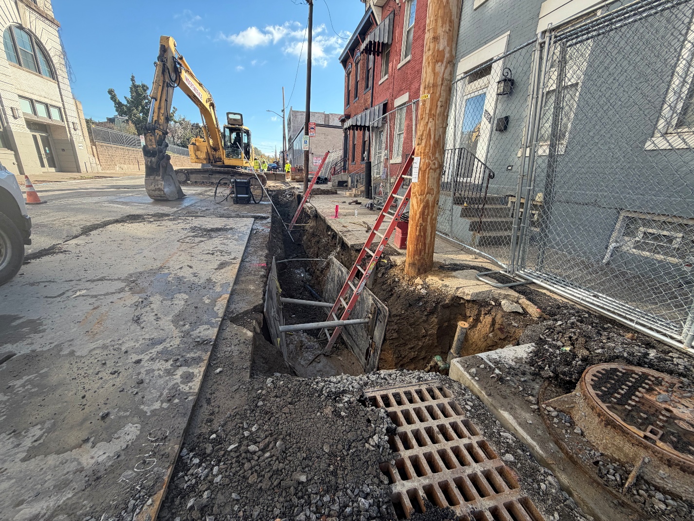 PRT’s contractor continues to install green infrastructure systems throughout Uptown. The most recent green infrastructure (GI) construction site is at Forbes Avenue and Miltenberger Street. This location will be an underground storage trench.