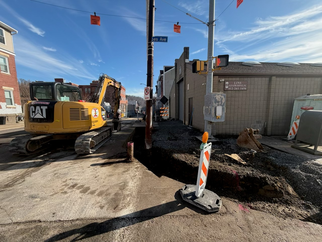On Monday December 22, the University Line construction in Uptown expanded along Forbes Avenue between Stevenson and Jumonville streets. Ultimately, three new PRTX stations will be located within the work zone.