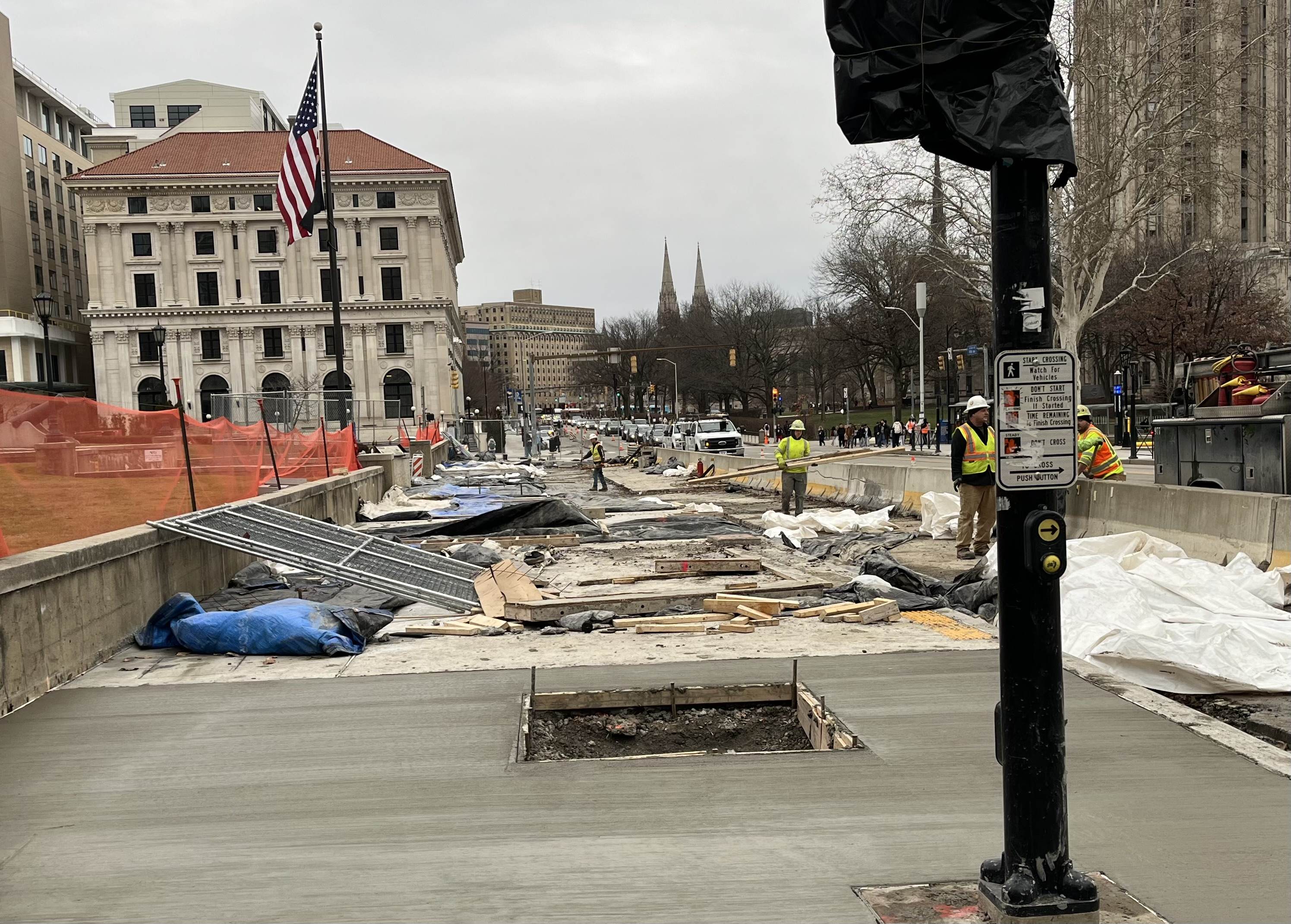 Parking has been suspended on both sides of Forbes Avenue between Stevenson and Jumonville streets. Side streets and intersections will remain open. Pedestrian access will be maintained with temporary crosswalks and accessible ramps.