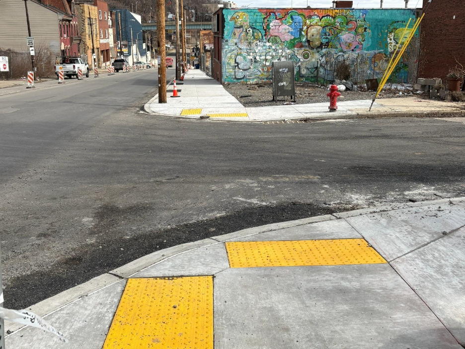 PRT’s contractor recently completed installation of a new sidewalk, curbs and accessible ramps at Forbes Avenue and Jumonville Street.